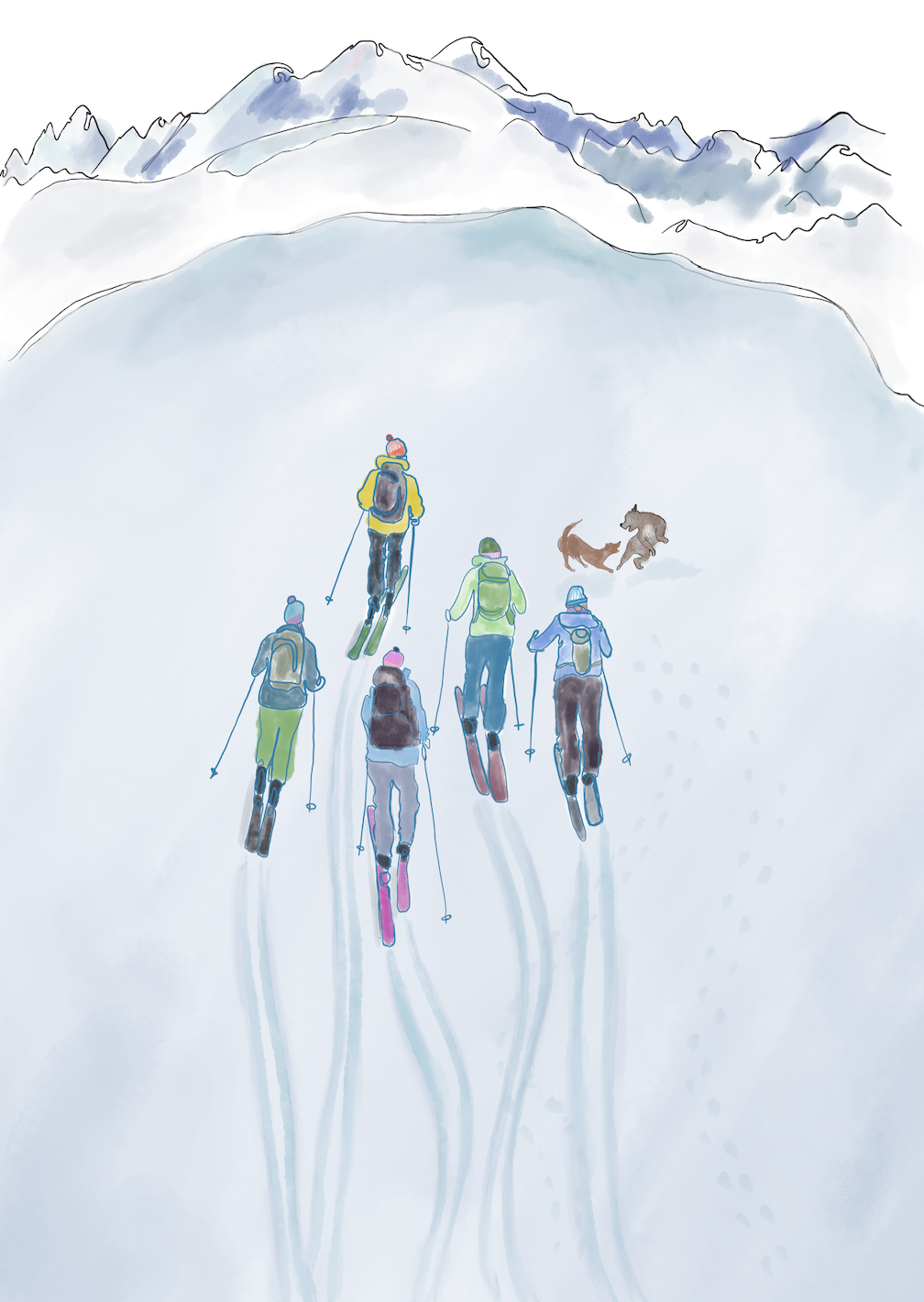 Alpine Skiers in a Winter Wonderland - 4 Blank Greeting Cards